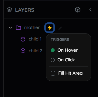 Zap: Indicates an active trigger (Hover/Tap) is applied.